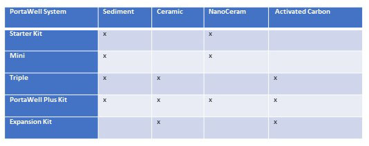 Note: This table is for information only and it is the responsibility of the user to select the appropriate water source and filter setup as some water sources may have additional contaminants than shown below. This table can be adapted for use with the two filter, three filter (PortaWell Triple) and 4 filter (PortaWell with Expansion Kit) systems.